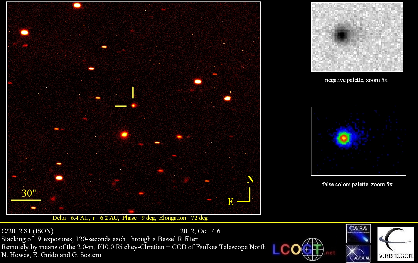 Trotz störenden Mondlichts wurde Komet Ison in der 4. Oktoberwoche vielfach fotografiert. Helligkeitsschätzungen waren allerdings kaum möglich. Die spärlichen Angaben deuteten darauf hin, dass C/2012 S1 jetzt etwas heller als 10 mag war, was durch eine aktuelle Helligkeitskurve bestätigt wurde.